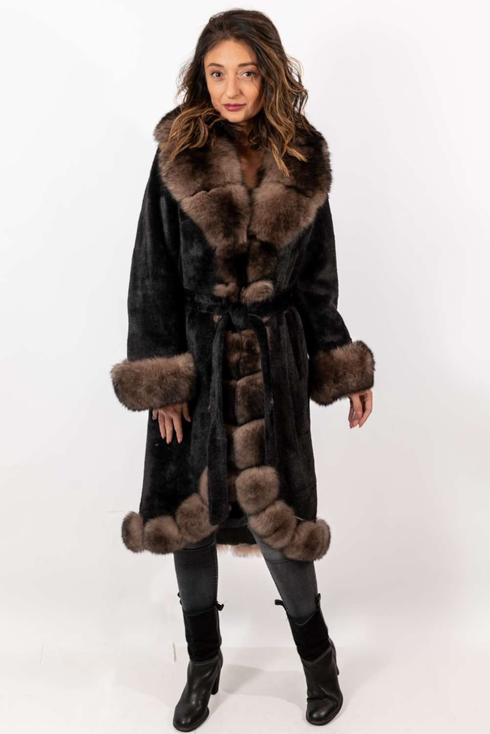 Der Pelzmantel Militsa stammt aus unserer exklusiven Kollektion. Ein Pelzmantel mit Stil und Charakter, mit dem Sie selbst an den kältesten Wintertagen auffallen. Der Militsa-Pelzmantel ist aus hochwertigem Alpaka gefertigt und verfügt über einen edlen Kragen, Bündchen und Besatz aus Naturfuchs. Ein äußerst eleganter und unvergesslicher Mantel mit seiner verlängerten und figurbetonten Silhouette. Sehr leichte und warme Oberbekleidung. Der Mantel hat zwei praktische Taschen. Wenn Sie sich von der Masse abheben und stilvoll auftreten möchten, ist dies der perfekte Mantel für Sie.
