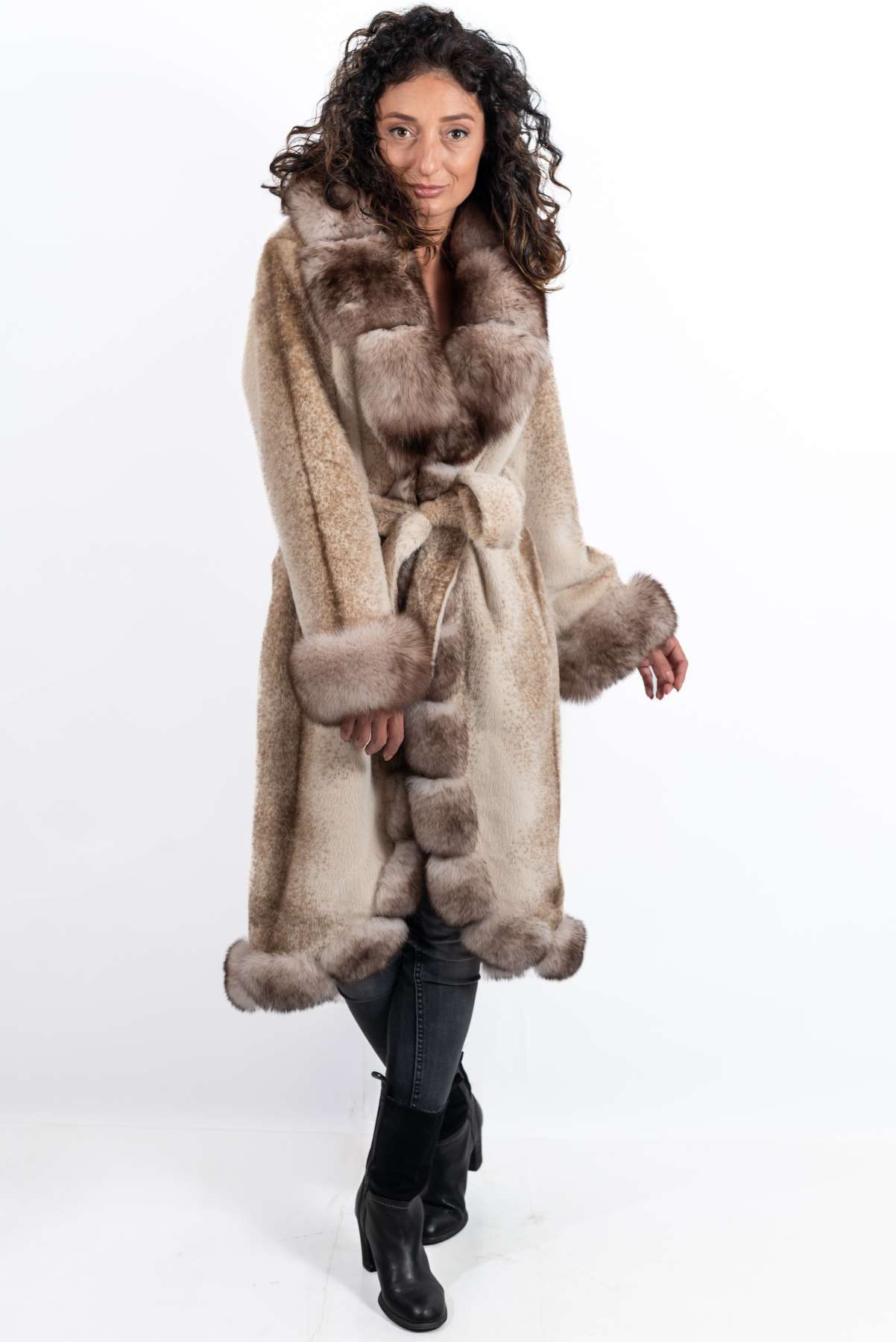Der Pelzmantel Militsa stammt aus unserer exklusiven Kollektion. Ein Pelzmantel mit Stil und Charakter, mit dem Sie selbst an den kältesten Wintertagen auffallen. Der Militsa-Pelzmantel ist aus hochwertigem Alpaka gefertigt und verfügt über einen prächtigen Kragen, Bündchen und Besatz aus Naturfuchs. Ein äußerst eleganter und unvergesslicher Mantel mit seiner verlängerten und figurbetonten Silhouette. Sehr leichte und warme Oberbekleidung. Der Mantel hat zwei praktische Taschen. Wenn Sie sich von der Masse abheben und stilvoll aussehen möchten, ist dies der perfekte Mantel für Sie.