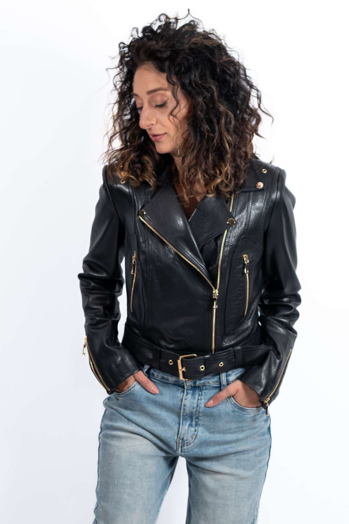 Damska krótka skórzana kurtka Alessa w stylu motocyklowym. Wykonana z wysokiej jakości skóry jagnięcej. Sportowo-elegancka kurtka skórzana, pasująca do każdego stylu ubioru na co dzień. Wygodne kieszenie zapinane na suwak. Damska skórzana kurtka Alessa to model motocyklowy /zapinana na suwak z boku/. Skórzana kurtka Alessa to nowoczesna, wygodna i odpowiednia odzież wierzchnia na sezon wiosenno-jesienny.