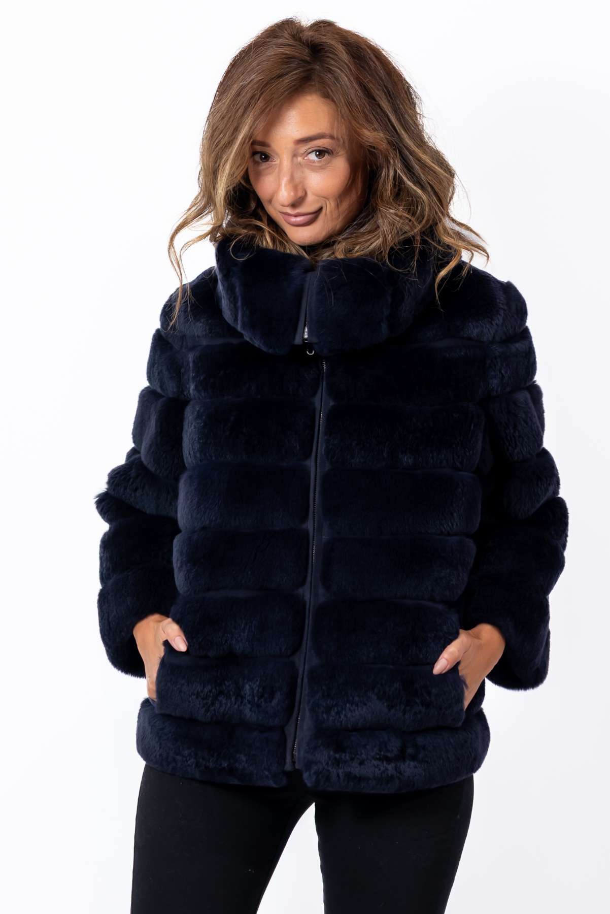 The exclusive coat is made of high-quality natural chinchilla fur. Modern and stylish cut. Unique and stylish color - Blue. It has two convenient outer pockets. Light, warm and comfortable coat for every occasion in your everyday life. Chinchilla fur is extremely soft and pleasant to the touch, which makes it a symbol of luxury and comfort.This is a result of the fact that each chinchilla hair follicle contains numerous fine hairs (up to 80 per follicle), which gives it its unique texture. Chinchilla fur is very light compared to other types of fur clothing, making it comfortable to wear without being burdensome.Despite its lightness, chinchilla fur provides excellent insulation and warmth, as the density of the fur traps air and protects against the cold. Chinchilla furs often have a unique and beautiful natural shade, ranging from gray-blue to black, which adds sophistication and exclusivity to the clothing.If properly maintained, chinchilla fur can last for years without losing its softness and beauty. Chinchilla fur is hypoallergenic, as they do not have oil glands, making it suitable for people with sensitive skin or allergies.