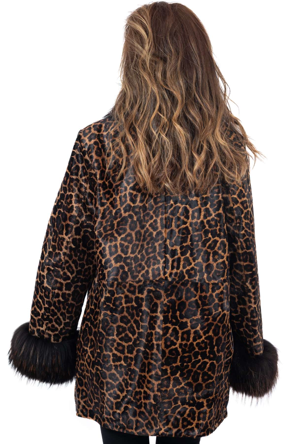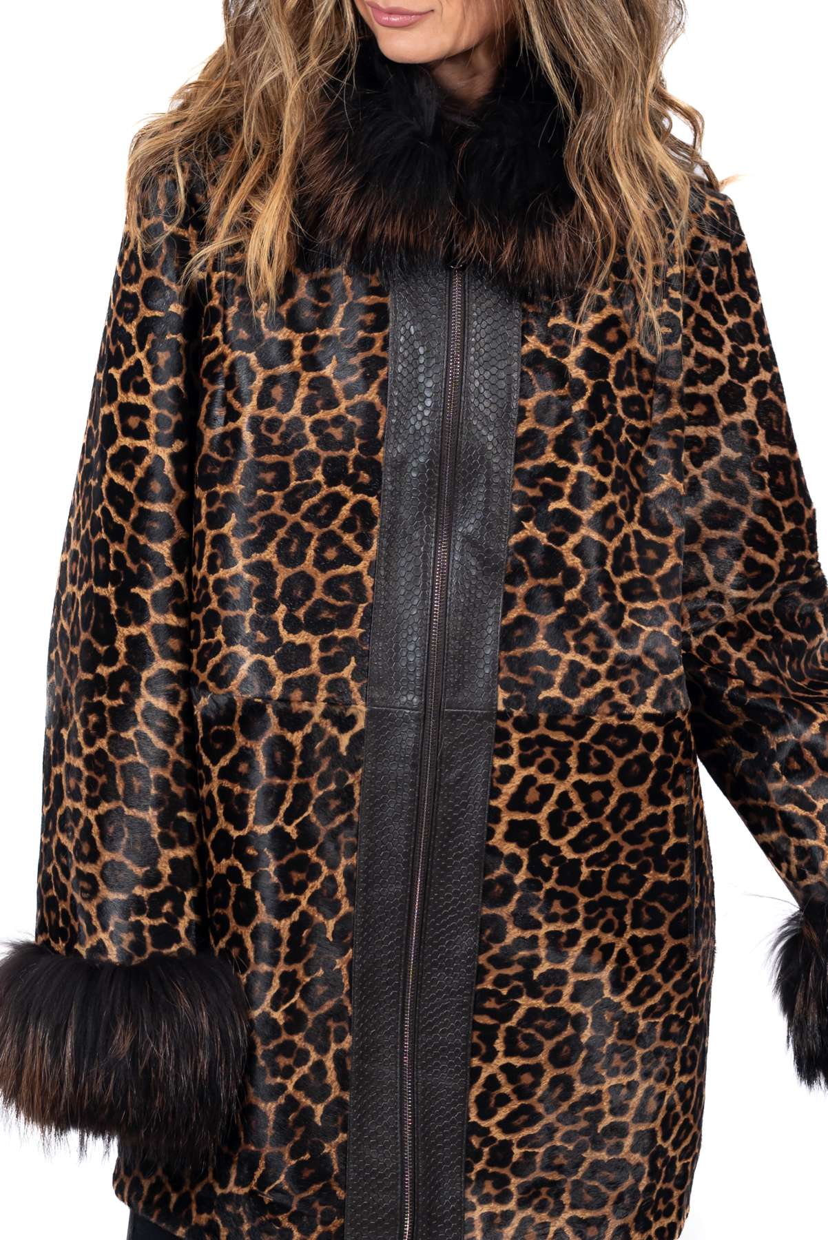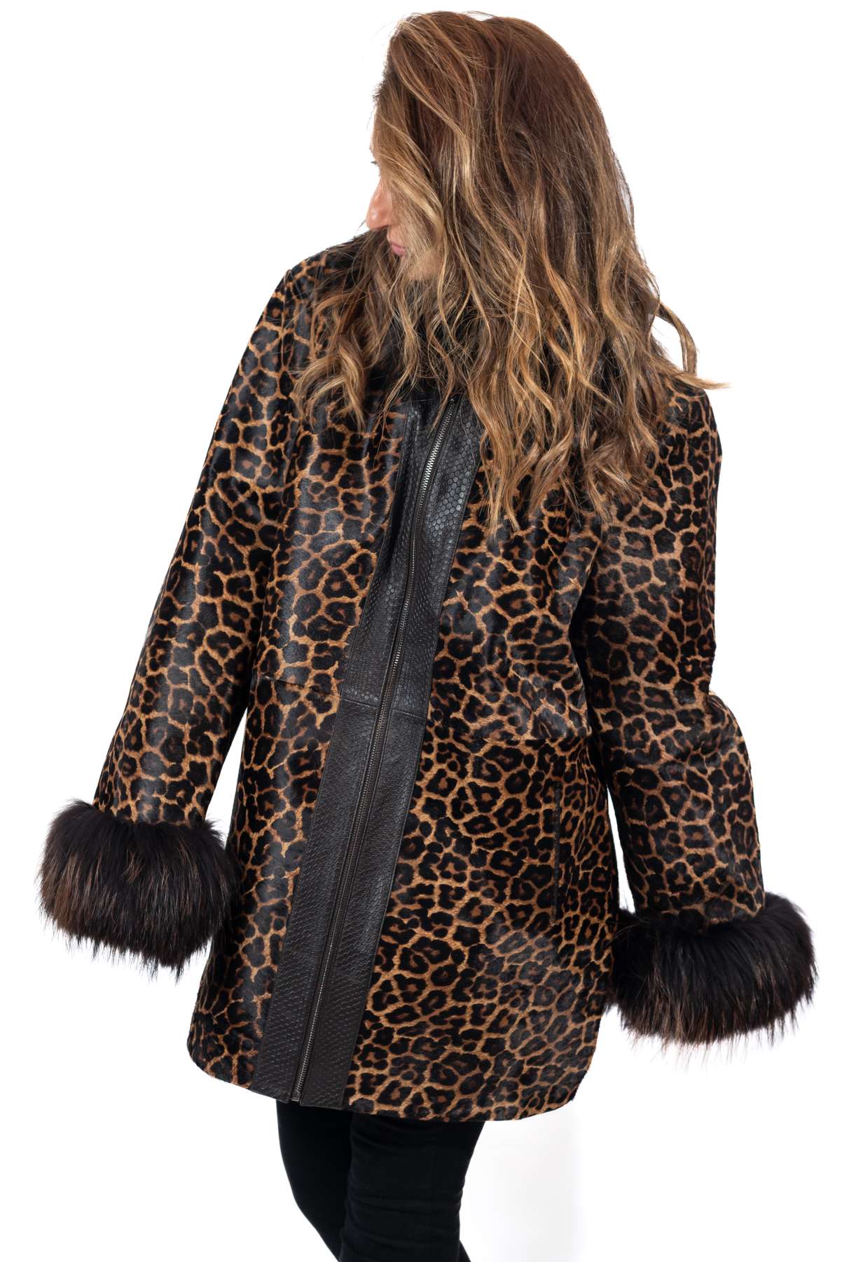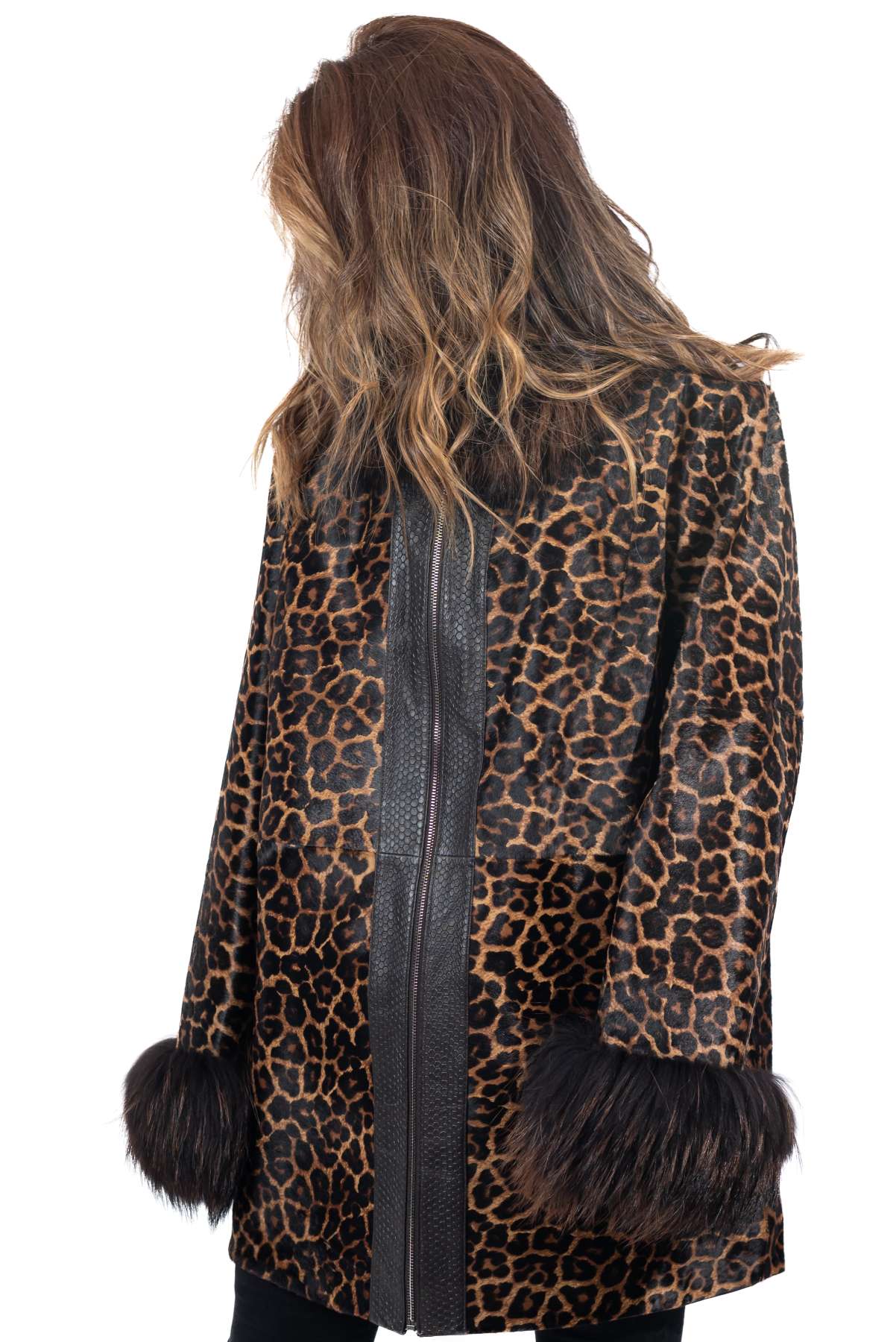 Exclusive women's coat made of Pony fur with a collar and cuffs made of natural Raccoon fur - a symphony of luxury and style. Allow yourself to be the center of attention with this unique women's coat made of high-quality Pony fur, complemented by an elegant collar and cuffs made of natural Raccoon fur.Every detail is created with extreme precision to highlight the unique beauty of genuine leather and create a unique, luxurious silhouette.The rich hues and characteristic pattern of the Leopard print bring a sense of natural harmony and wild elegance, while the Raccoon collar and cuffs add completeness and an aristocratic appearance.This coat is the perfect choice for ladies with sophisticated taste who are looking for not just warmth, but a real jewel in their wardrobe - a symbol of luxury, confidence and unique style. Created for special occasions, but also versatile enough to turn any winter day into a podium of elegance.