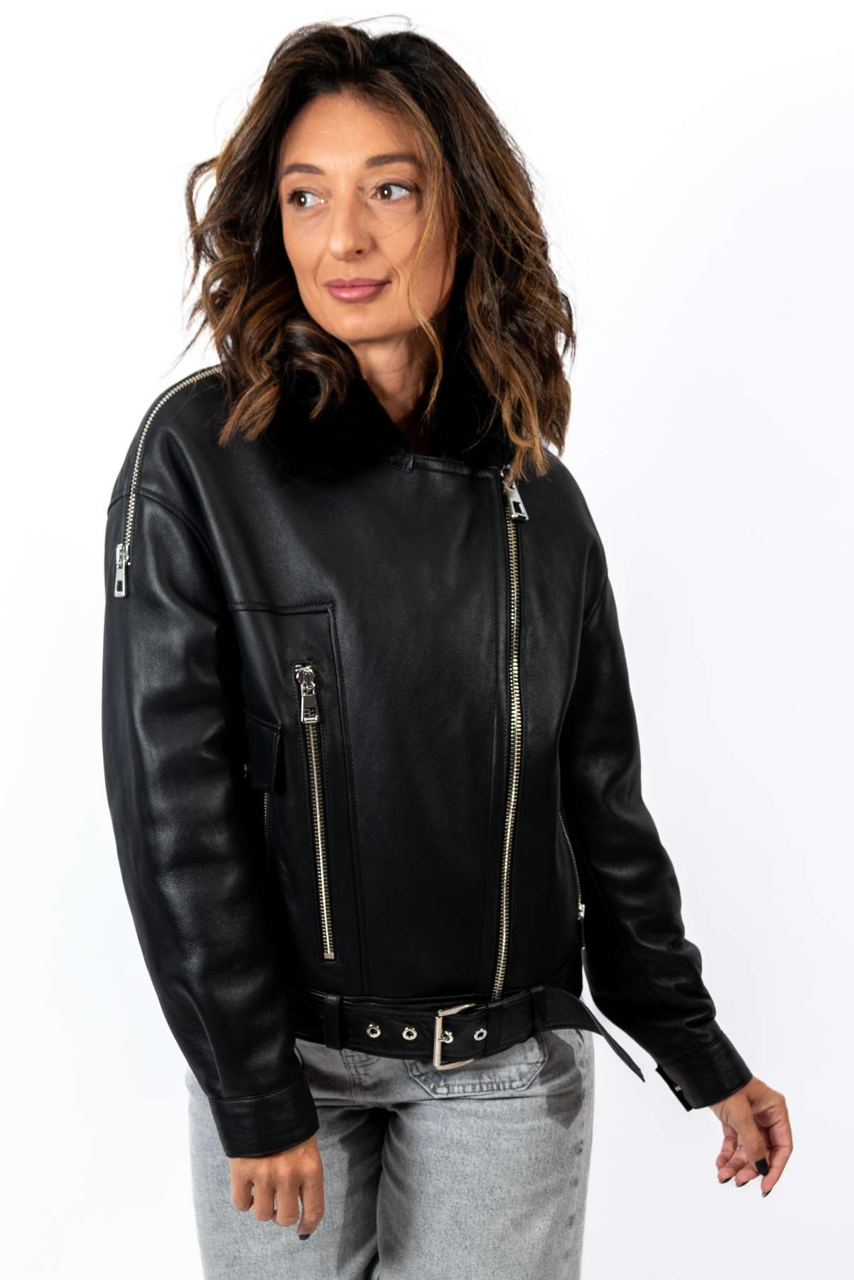 A unique women's coat made of natural lambskin, very light and warm. The lambskin is treated with special oils that make the leather resistant to rain and snow. The combination of lambskin and lamb mouton makes the coat unique. The exclusive zippers give it a unique and modern look.Ultramodern coat, pilot type with dropped shoulders and decorative zippers on the shoulders. There are two convenient pockets. Decorative belt with a spectacular buckle. If you want a beautiful, comfortable and warm coat, Valeria coat is your choice.