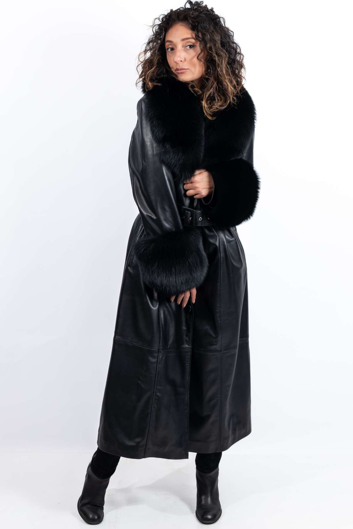 Elegant women's coat, with an elongated and fitted silhouette. Women's leather coat Alexandra is made of high-quality natural lambskin, extremely soft and durable. It has two convenient outer pockets and fastens with buttons.The rich collar and cuffs made of natural fox fur are removable. The fur coat has a warm pressed lining, which is very light, warm and does not add unnecessary volume to the coat. Suitable outerwear for both spring and autumn, as well as for warmer winter days.
