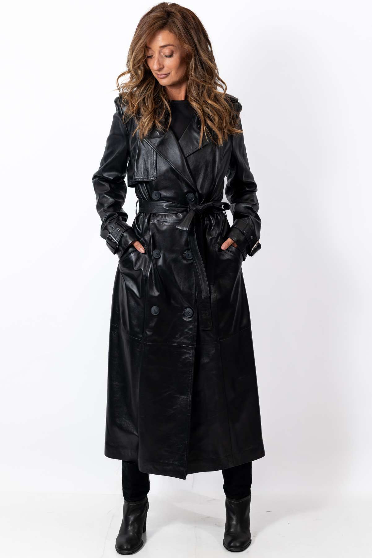 Women's coat Elana is elegant, with an elongated and fitted silhouette. The women's leather coat is made of high-quality natural lambskin, extremely soft and durable. It has two convenient outer pockets and a double-breasted fastening. It has a stylish neckline with lapels. The leather coat has a light and breathable lining.A suitable outerwear for spring and autumn. If you are elegant and modern, the Elana leather coat is your choice.