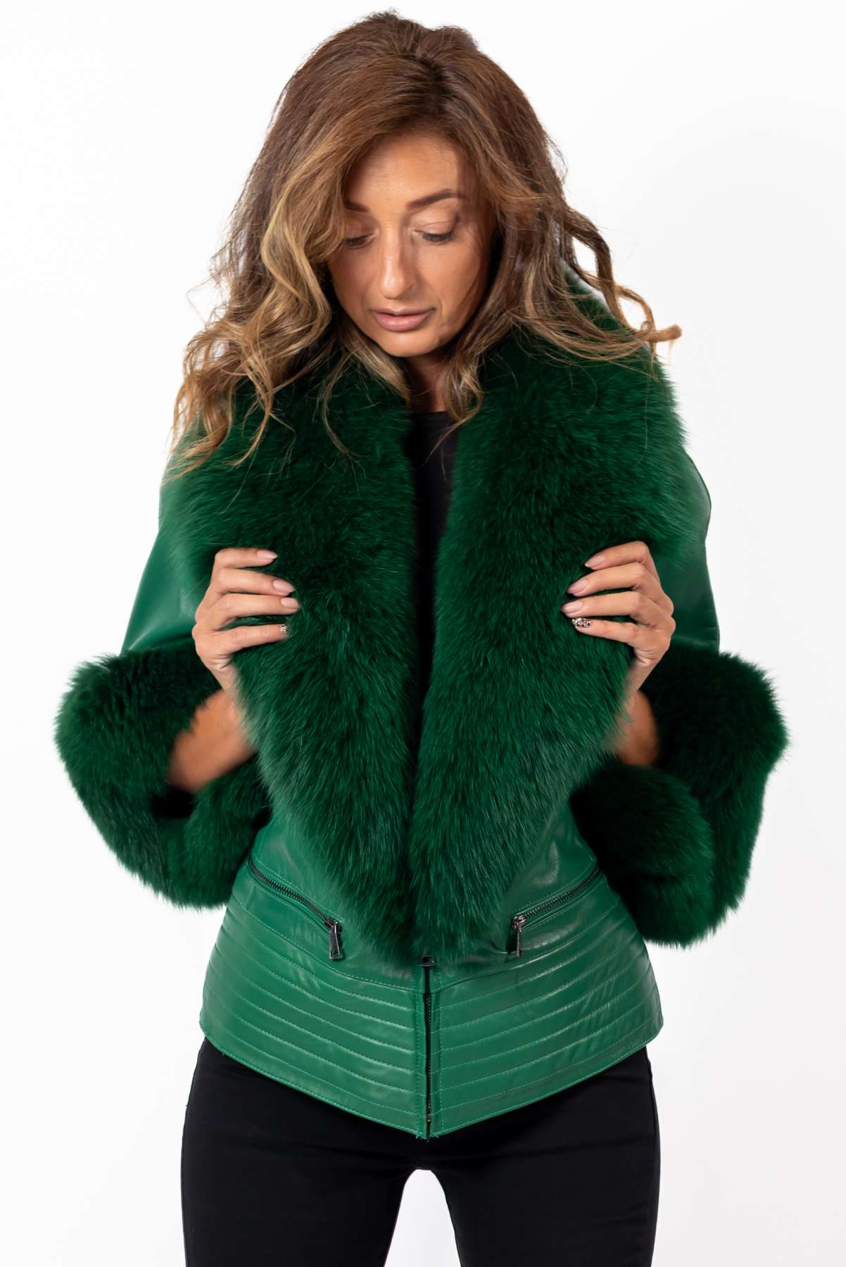 Exclusive women's leather jacket, with a slightly fitted silhouette. The women's leather jacket is made of high-quality natural lambskin, extremely soft and durable. It has two convenient outer pockets and is fastened with a zipper. Rich collar and cuffs made of natural fox fur.7/8 sleeves, very comfortable when driving. The leather jacket has a warm pressed lining, which is very light, warm and does not add unnecessary volume to the jacket. Suitable outerwear for both spring and autumn, as well as for warmer winter days. Ablena leather jacket is a jewel that will complement your wardrobe and will bring you mood.