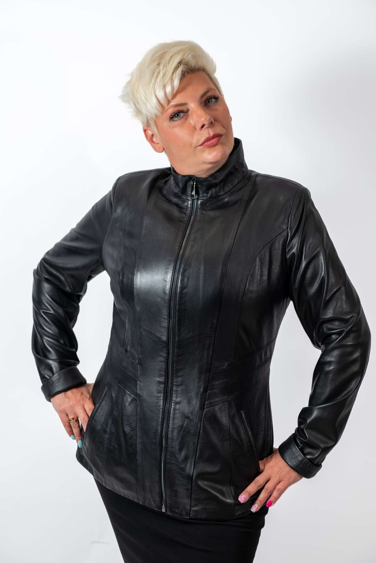 Elegant women's leather jacket, Adela jacket type. Made of high quality lambskin.Clean and slightly fitted silhouette suitable for any style of clothing. The model is elegant and slightly fitted, suitable for ladies with a larger figure. Leather jacket Adela is a comfortable and convenient, suitable outerwear for the spring-autumn season.